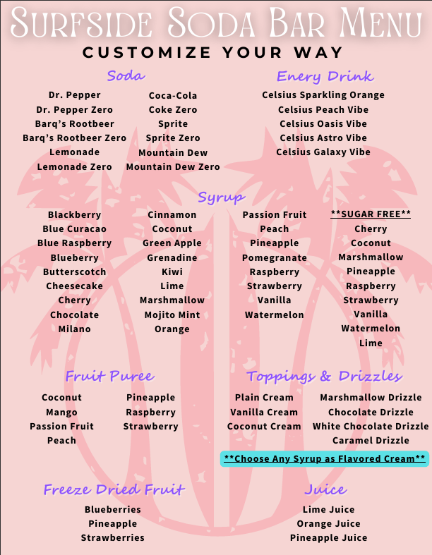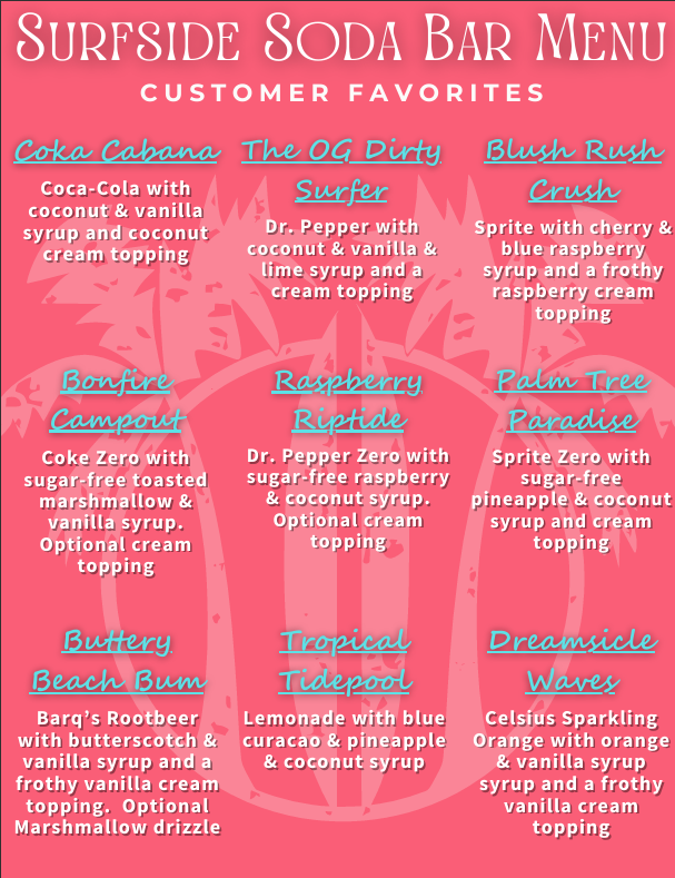 Our friends at Surfside Soda Bar can pull up right to your event.  anywhere in Florida with their unlimited menu!