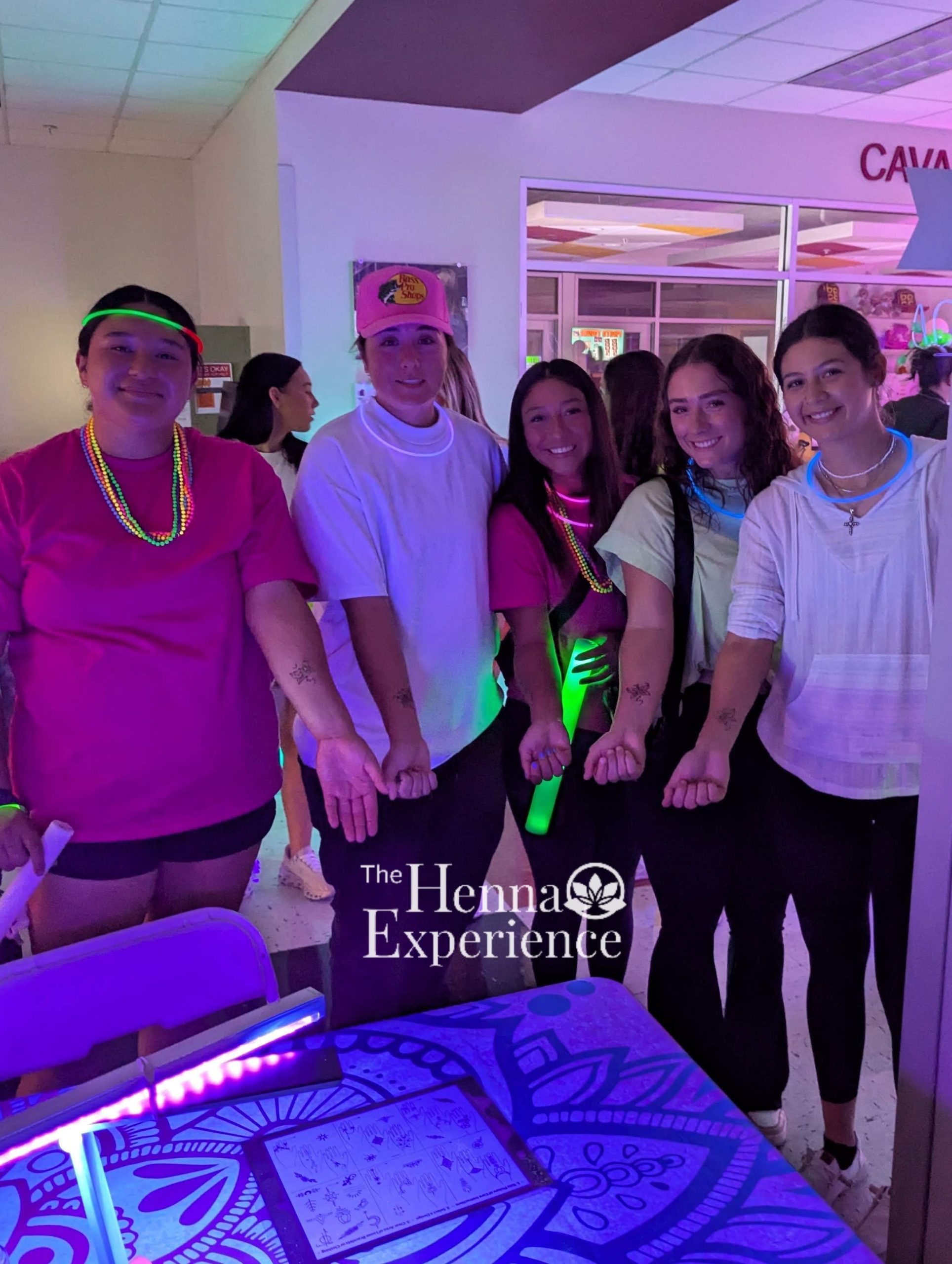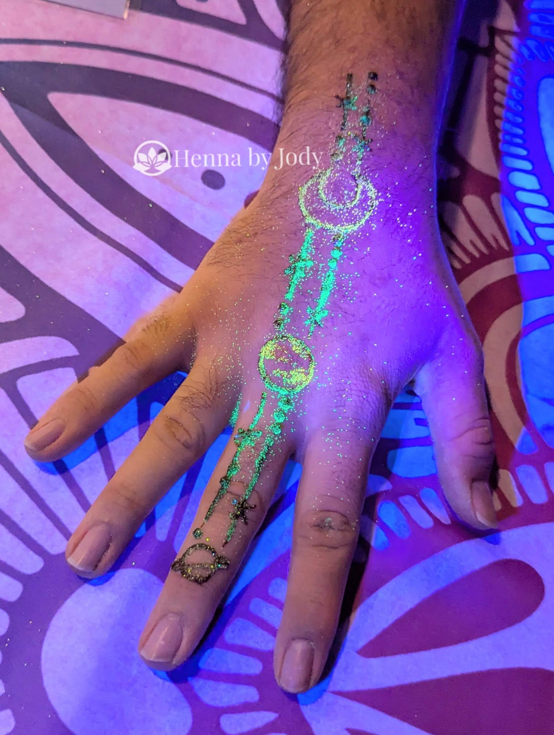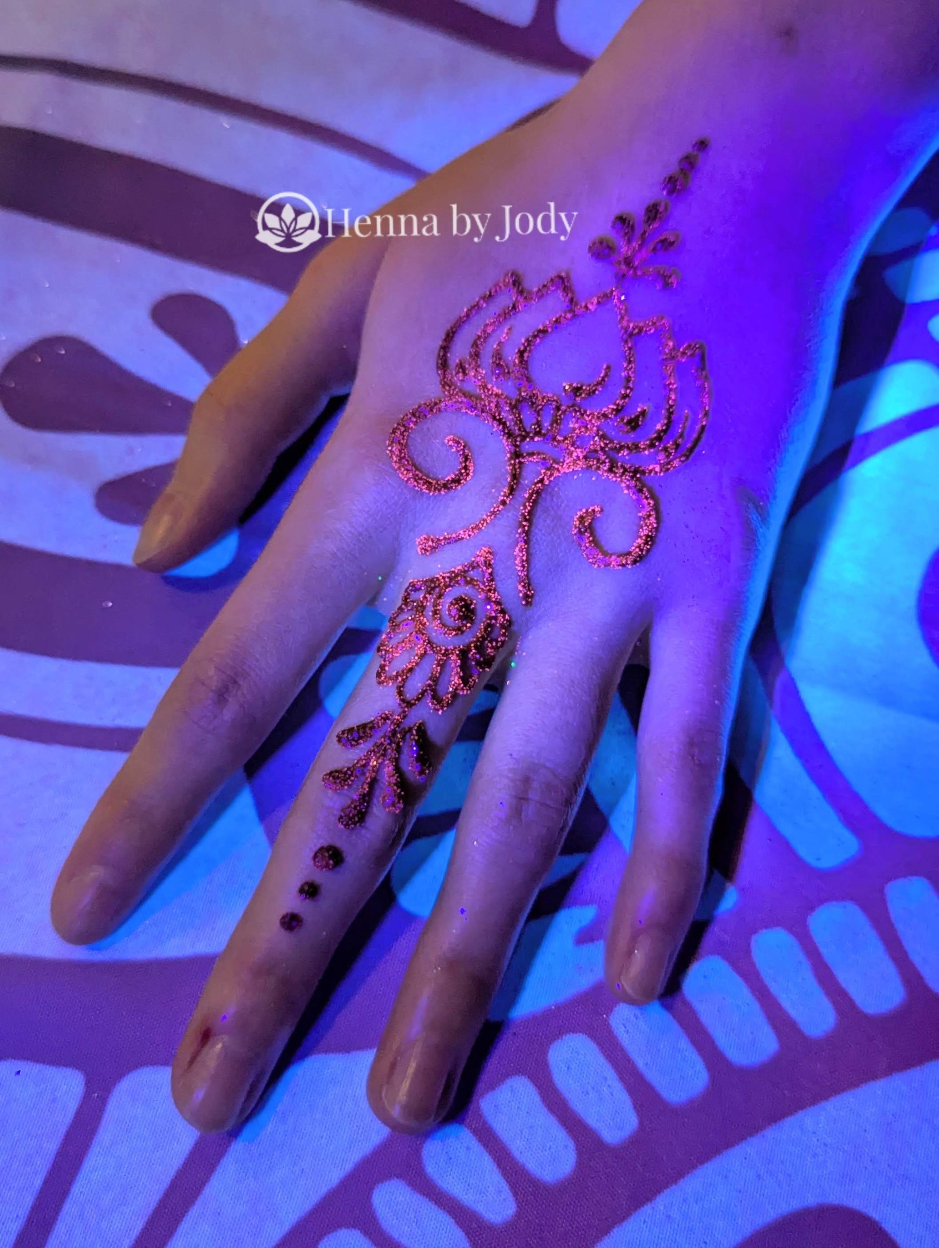 Get custom UV henna to add to your glow event. Fast lines, bright shine, lasting stain. This is a fun and unexpected addition to your glow events!